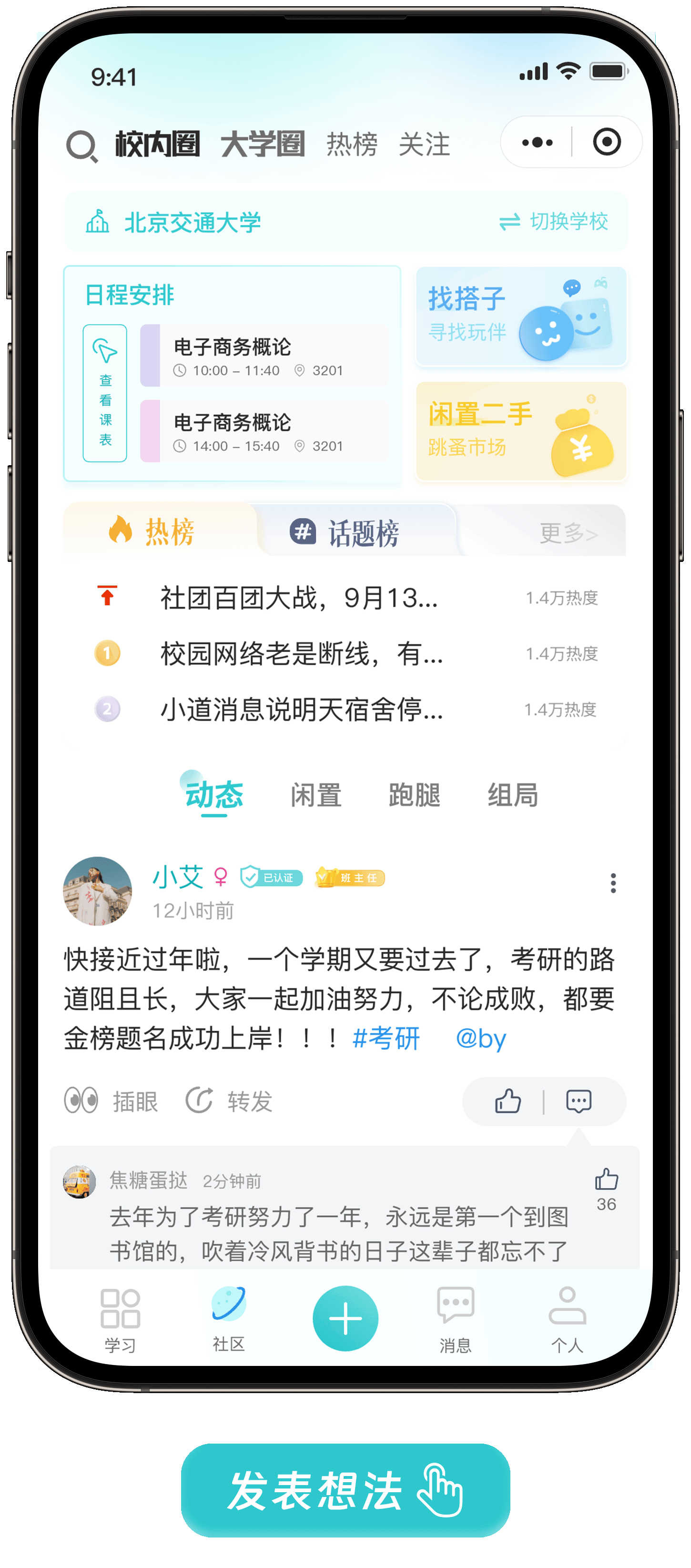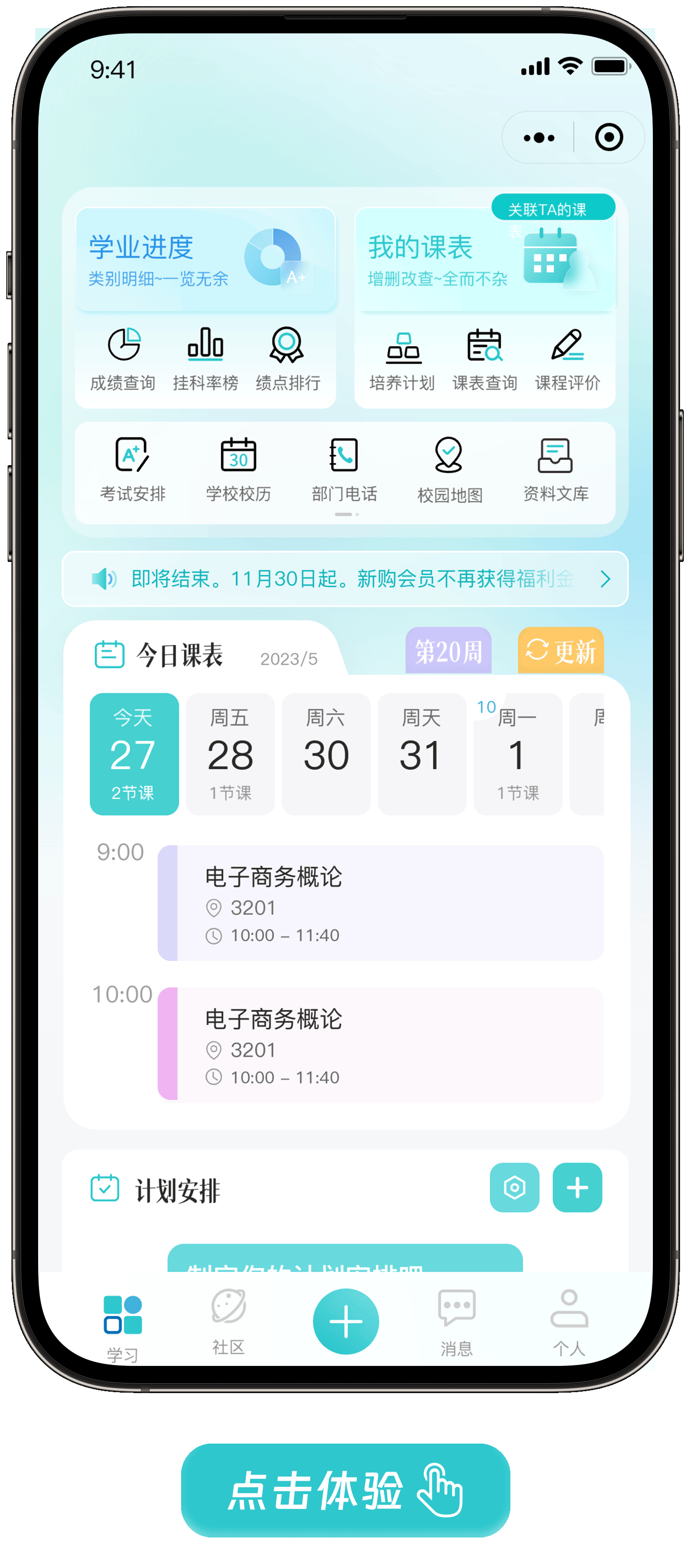AIGC一站式校园综合服务平台,集成综合教务、社区论坛、升学就业、生活服务及AI助手等多元化校园服务场景